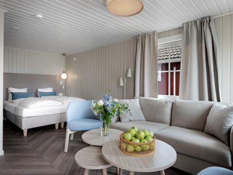 TanumStrand Spa & Resort är en modern och inbjudande resort som passar både par, vänner och familjer som vill koppla av vid havet. De stilfulla hotellrummen och mysiga stugorna ger gäster möjlighet att bo bekvämt med havet precis utanför dörren. Många rum har en fantastisk utsikt över skärgården, vilket skapar en harmonisk och avkopplande atmosfär.